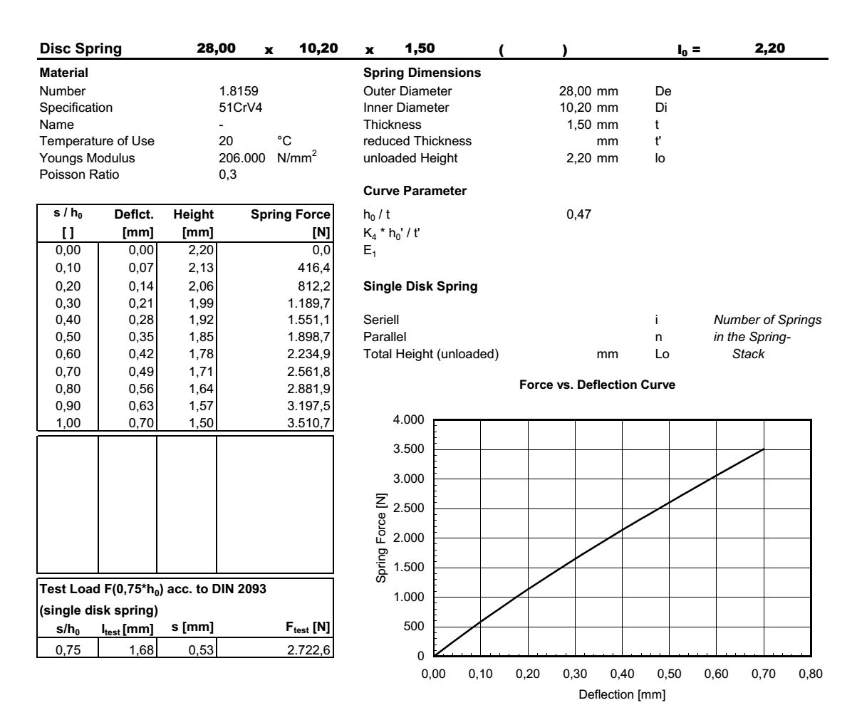 These conical springs provide an elastic axial strength proportional to deformation they suffer. Depending on your needs, it's possible to stack these springs in serial or in parallel to achieve the spring required. To know more about these springs consult: Disc Springs DIN 2093 / DIN EN 16983